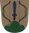 In Gold über grünem Dreiberg ein senkrecht gestelltes blaues Schwert, besaitet von zwei einwärts gekehrten grünen Bögen.
